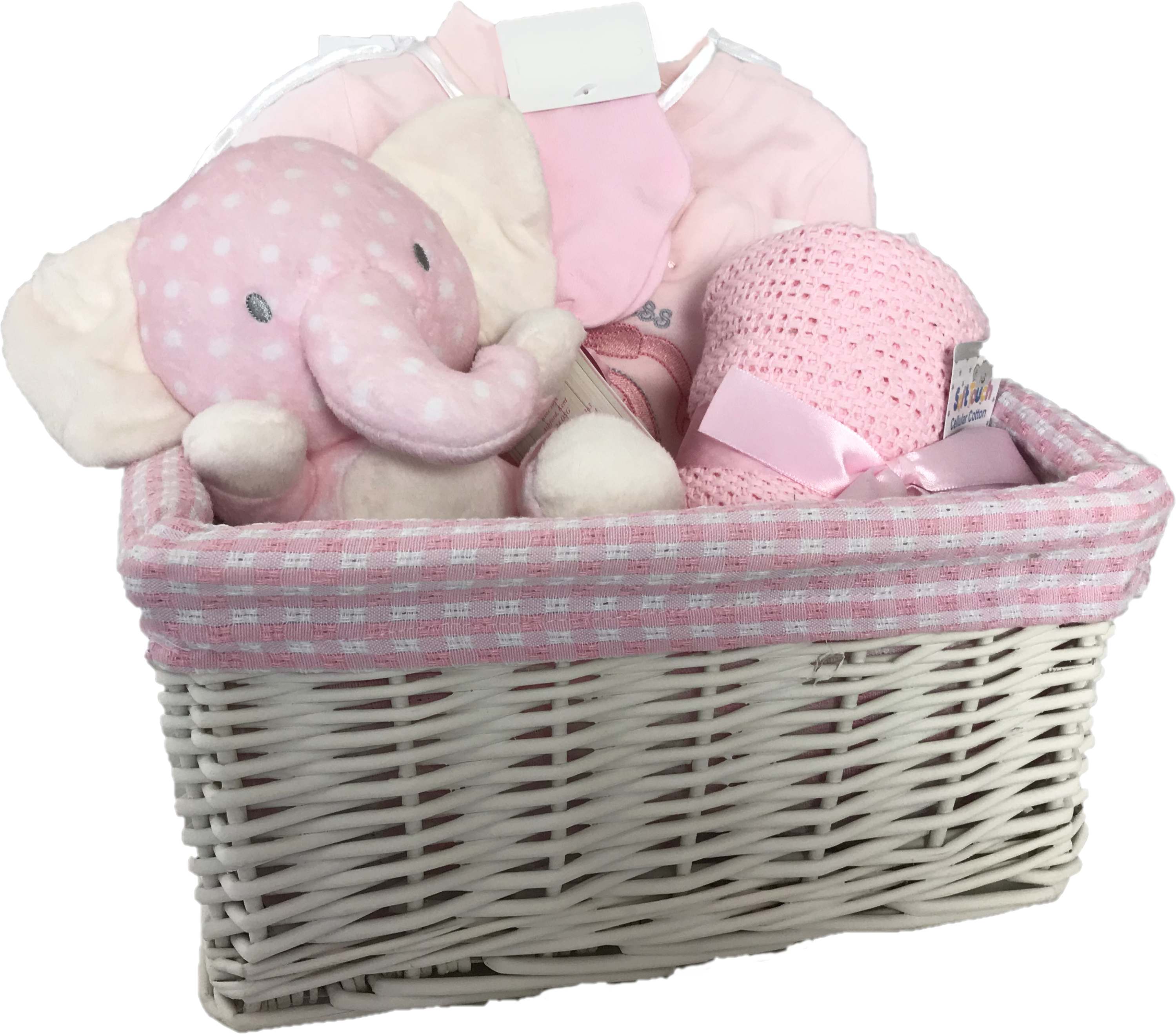 Lullaby Elephant New Baby Gift Basket Pink